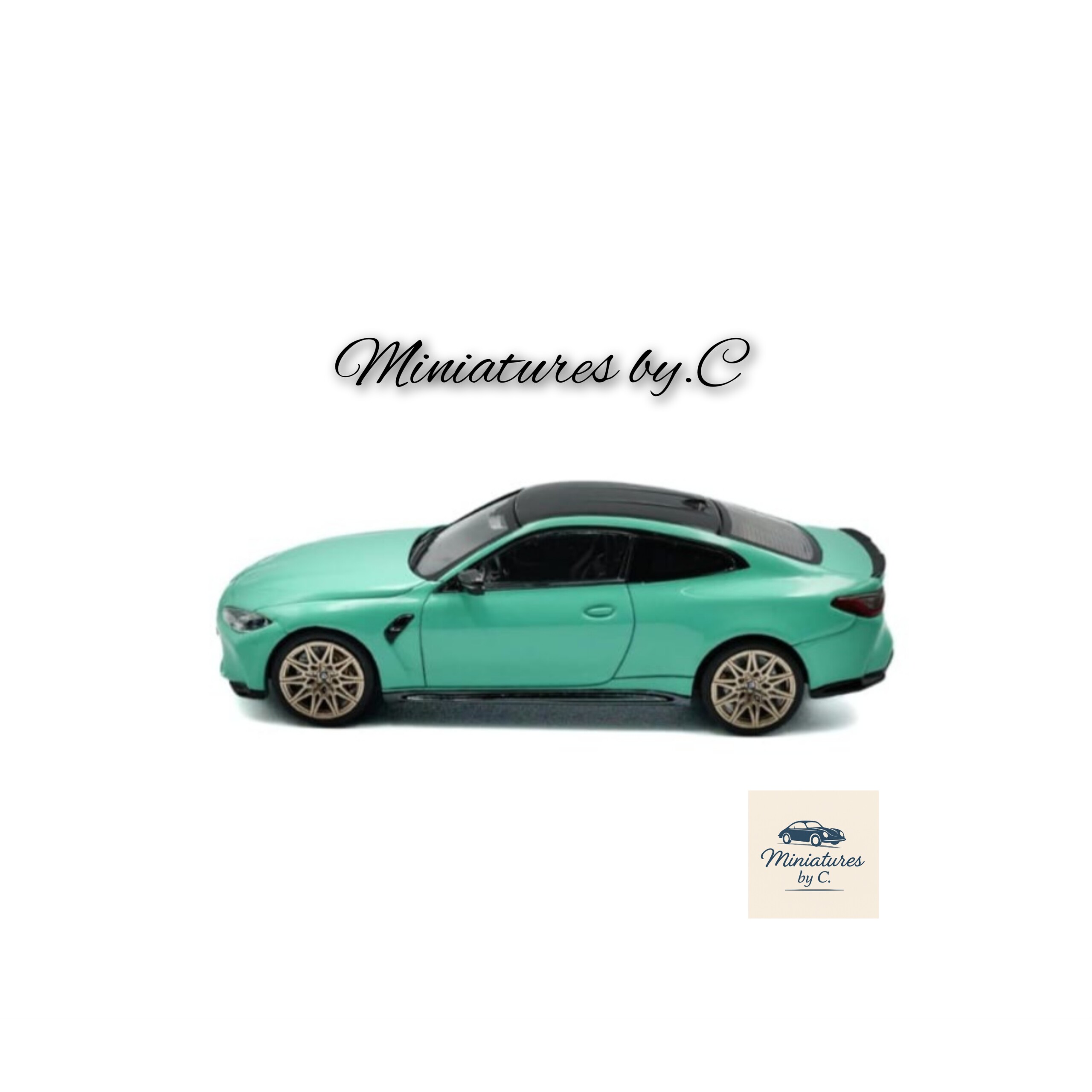 Modèle : BMW M4 G82 Compétition Marque : Solido Échelle : 1:43 Matière : Métal (diecast) + pièces plastiques Couleur : Vert (avec toit noir et jantes dorées) Présentation : boîte vitrine Solido Détails : reproduction fidèle avec finitions sportives M