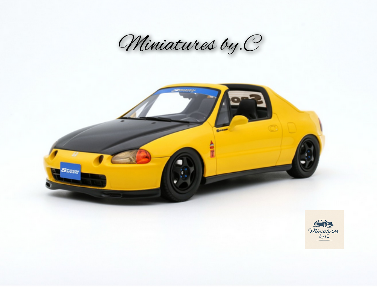 Honda CRX Del Sol Spoon – 1:18 – OttOmobileSuperbe reproduction de la mythique Honda CRX Del Sol préparée par Spoon. Cette miniature au 1:18 signée OttOmobile se distingue par son look sportif, sa teinte jaune iconique et ses finitions soignées. Un modèle très apprécié des amateurs de JDM et de sportives japonaises.