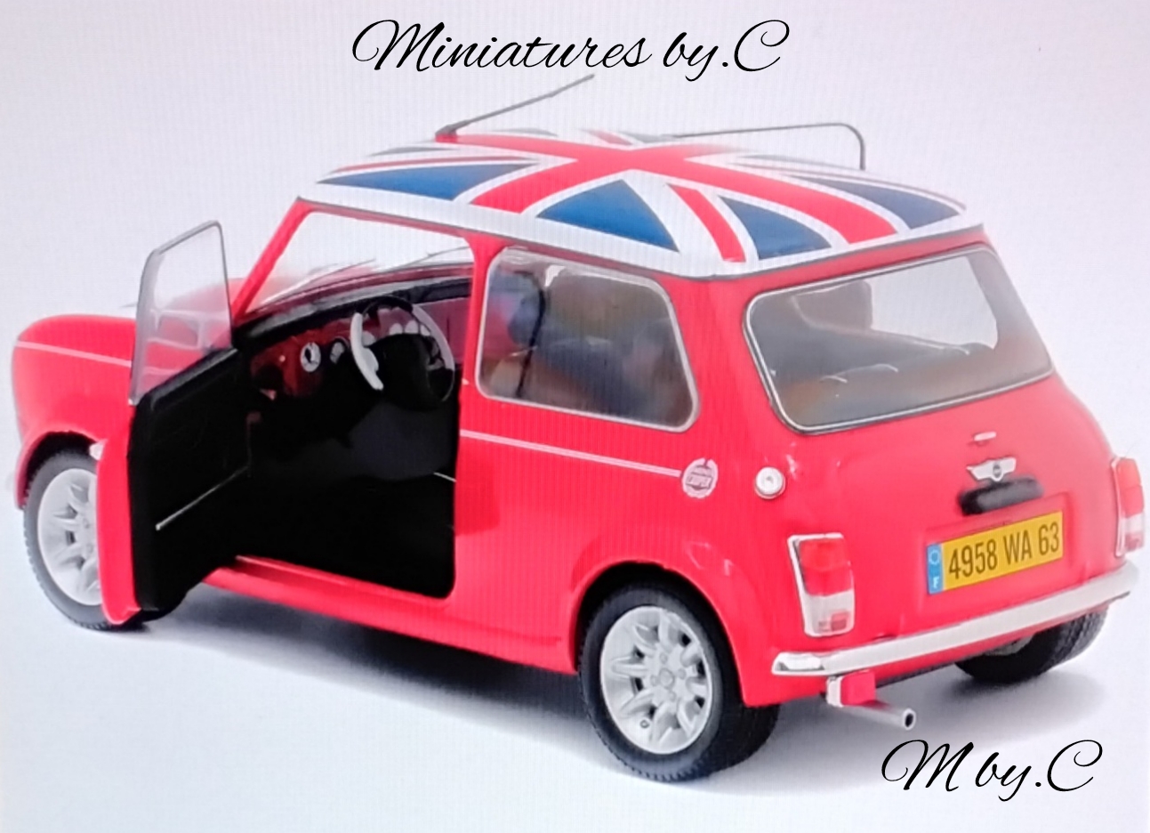 Cette Mini Cooper S de 1997 séduit par son look iconique, sa teinte rouge éclatante et son toit aux couleurs du drapeau britannique.